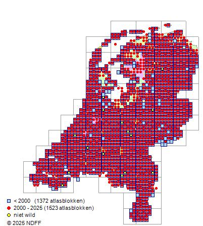 Bron: FLORON - Gemodelleerd op basis van waarnemingen uit de NDFF voor de periode 2000-2021.