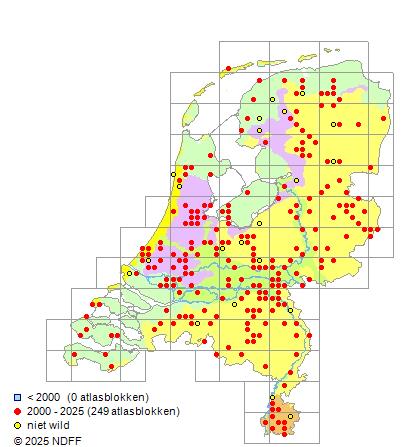 Bron: FLORON - Gemodelleerd op basis van waarnemingen uit de NDFF voor de periode 2000-2021.