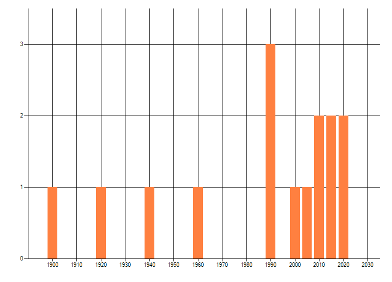 dus een trend in verspreiding kan hier niet direct uit worden afgelezen. Het opgegeven jaartal is het eerste jaar van de