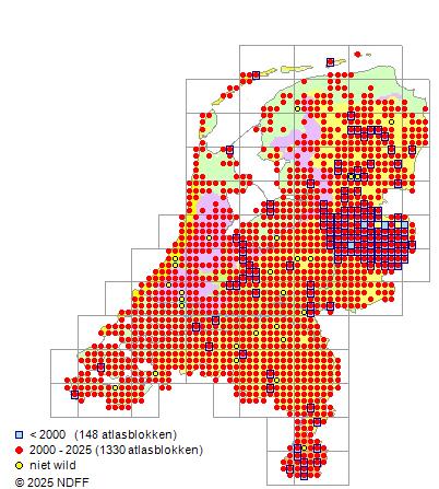 CC BY-NC-SA 3.0 NLVerspreidingNederlandVrij algemeen, maar vrij zeldzaam in Drenthe en zeldzaam in zeeklei- en laagveengebieden.