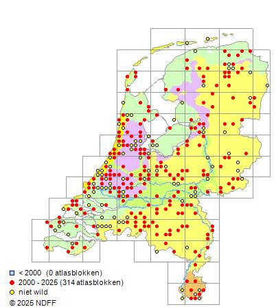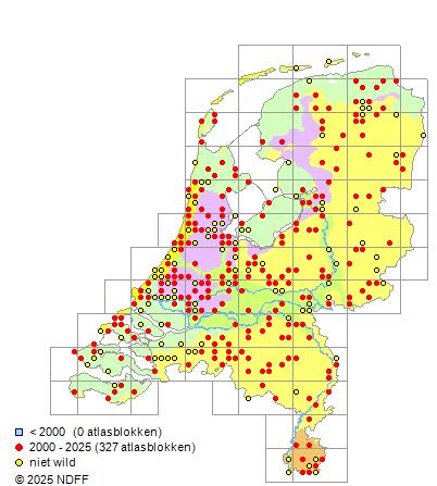 Bron: FLORON - Gemodelleerd op basis van waarnemingen uit de NDFF voor de periode 2000-2021.