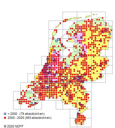 Bron: FLORON - Gemodelleerd op basis van waarnemingen uit de NDFF voor de periode 2000-2021.