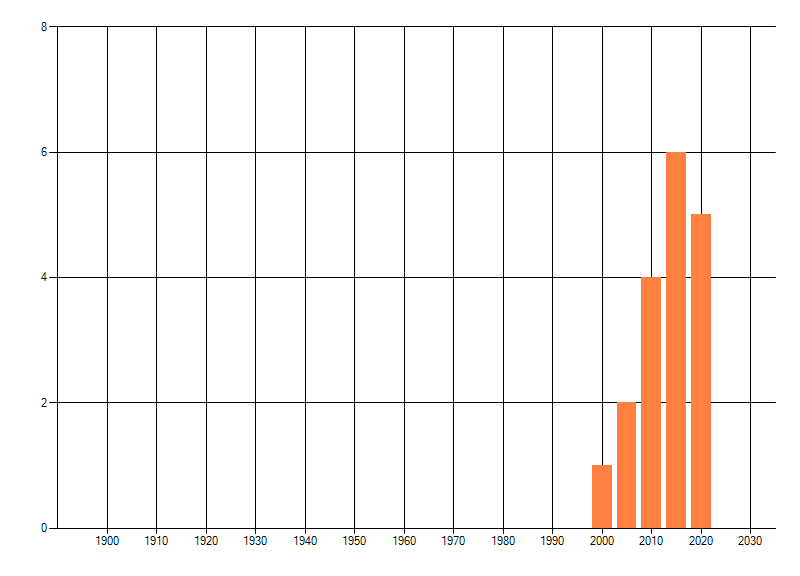 dus een trend in verspreiding kan hier niet direct uit worden afgelezen. Het opgegeven jaartal is het eerste jaar van de