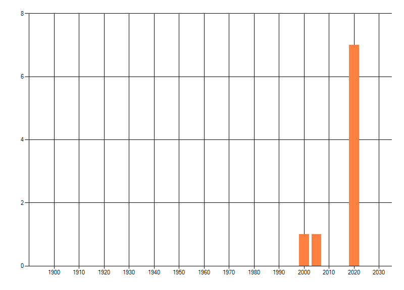 Het aantal atlasblokken (5x5 km) waarin de soort is gemeld binnen een periode van vijf jaar (vanaf 1980) of twintig jaar. Niet gecorrigeerd voor waarnemersinspanning en het aantal doorgegeven waarnemingen kan sterk variëren per periode, dus een trend in verspreiding kan hier niet direct uit worden afgelezen. Het opgegeven jaartal is het eerste jaar van de periode. Bron: gevalideerde waarnemingen uit de NDFF.