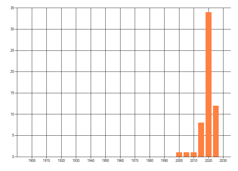 Het aantal atlasblokken (5x5 km) waarin de soort is gemeld binnen een periode van vijf jaar (vanaf 1980) of twintig jaar. Niet gecorrigeerd voor waarnemersinspanning en het aantal doorgegeven waarnemingen kan sterk variëren per periode, dus een trend in verspreiding kan hier niet direct uit worden afgelezen. Het opgegeven jaartal is het eerste jaar van de periode. Bron: gevalideerde waarnemingen uit de NDFF.