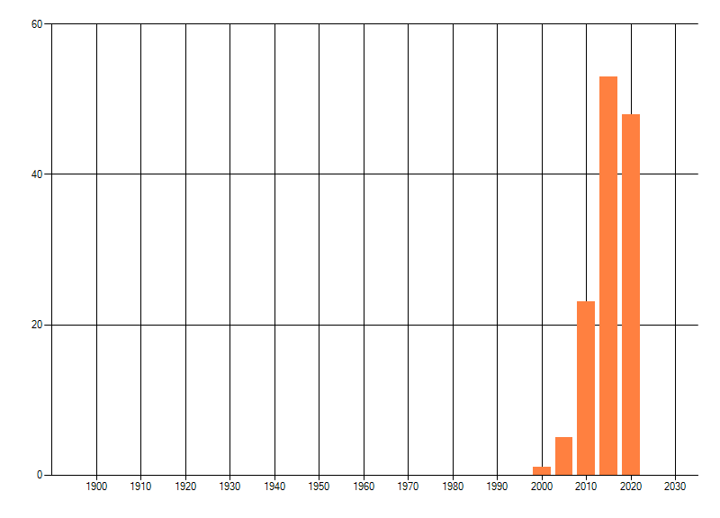 Het aantal atlasblokken (5x5 km) waarin de soort is gemeld binnen een periode van vijf jaar (vanaf 1980) of twintig jaar. Niet gecorrigeerd voor waarnemersinspanning en het aantal doorgegeven waarnemingen kan sterk variëren per periode, dus een trend in verspreiding kan hier niet direct uit worden afgelezen. Het opgegeven jaartal is het eerste jaar van de periode. Bron: gevalideerde waarnemingen uit de NDFF.