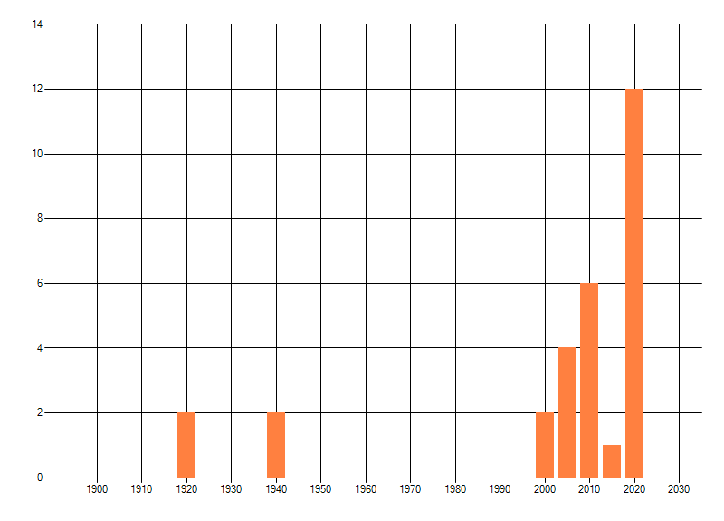 Het aantal atlasblokken (5x5 km) waarin de soort is gemeld binnen een periode van vijf jaar (vanaf 1980) of twintig jaar. Niet gecorrigeerd voor waarnemersinspanning en het aantal doorgegeven waarnemingen kan sterk variëren per periode, dus een trend in verspreiding kan hier niet direct uit worden afgelezen. Het opgegeven jaartal is het eerste jaar van de periode. Bron: gevalideerde waarnemingen uit de NDFF.