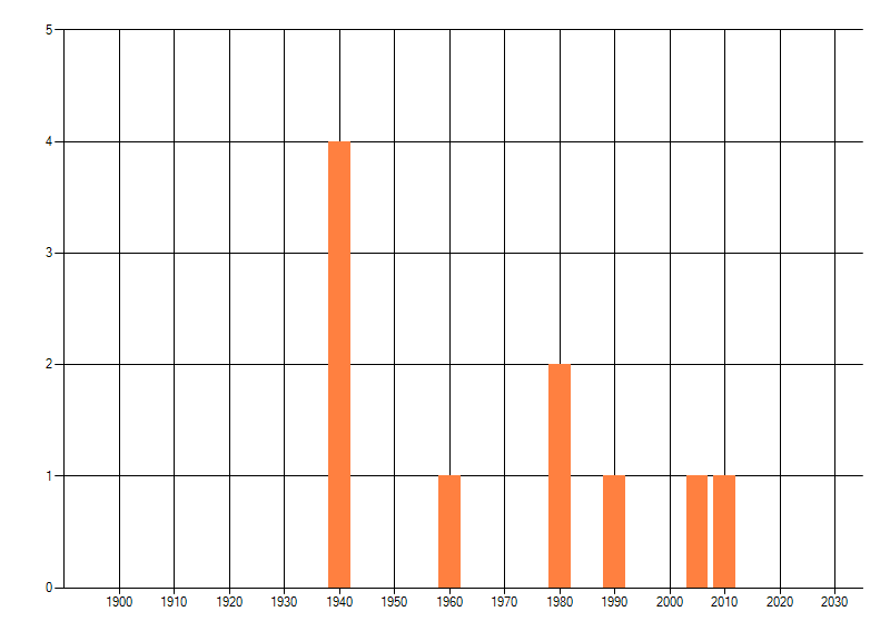 Het aantal atlasblokken (5x5 km) waarin de soort is gemeld binnen een periode van vijf jaar (vanaf 1980) of twintig jaar. Niet gecorrigeerd voor waarnemersinspanning en het aantal doorgegeven waarnemingen kan sterk variëren per periode, dus een trend in verspreiding kan hier niet direct uit worden afgelezen. Het opgegeven jaartal is het eerste jaar van de periode. Bron: gevalideerde waarnemingen uit de NDFF.