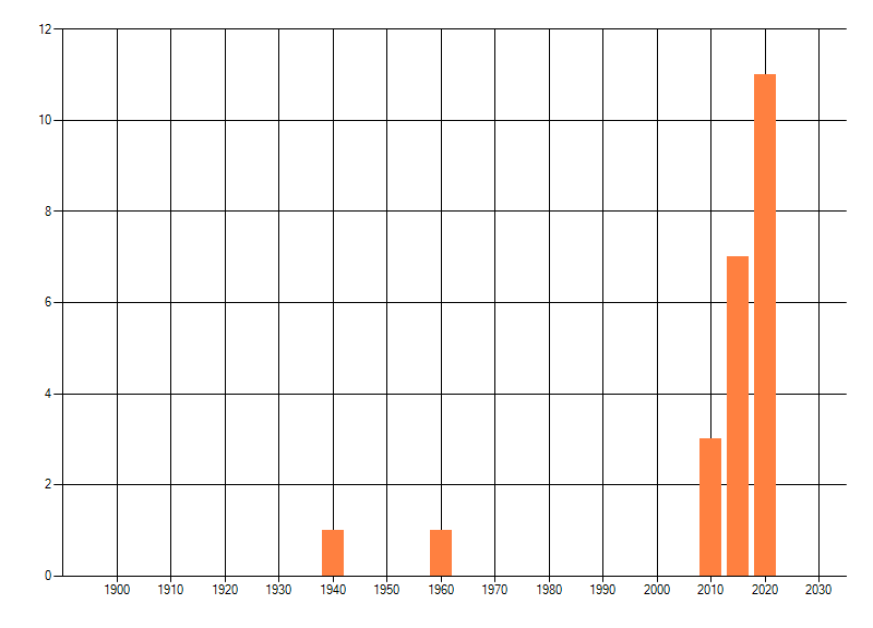 Het aantal atlasblokken (5x5 km) waarin de soort is gemeld binnen een periode van vijf jaar (vanaf 1980) of twintig jaar. Niet gecorrigeerd voor waarnemersinspanning en het aantal doorgegeven waarnemingen kan sterk variëren per periode, dus een trend in verspreiding kan hier niet direct uit worden afgelezen. Het opgegeven jaartal is het eerste jaar van de periode. Bron: gevalideerde waarnemingen uit de NDFF.