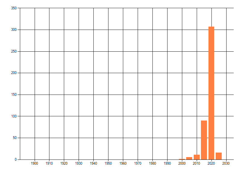 Het aantal atlasblokken (5x5 km) waarin de soort is gemeld binnen een periode van vijf jaar (vanaf 1980) of twintig jaar. Niet gecorrigeerd voor waarnemersinspanning en het aantal doorgegeven waarnemingen kan sterk variëren per periode, dus een trend in verspreiding kan hier niet direct uit worden afgelezen. Het opgegeven jaartal is het eerste jaar van de periode. Bron: gevalideerde waarnemingen uit de NDFF.