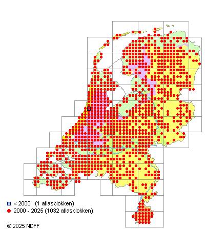 Bron: FLORON - Gemodelleerd op basis van waarnemingen uit de NDFF voor de periode 2000-2021.