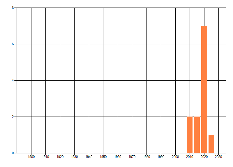 Het aantal atlasblokken (5x5 km) waarin de soort is gemeld binnen een periode van vijf jaar (vanaf 1980) of twintig jaar. Niet gecorrigeerd voor waarnemersinspanning en het aantal doorgegeven waarnemingen kan sterk variëren per periode, dus een trend in verspreiding kan hier niet direct uit worden afgelezen. Het opgegeven jaartal is het eerste jaar van de periode. Bron: gevalideerde waarnemingen uit de NDFF.