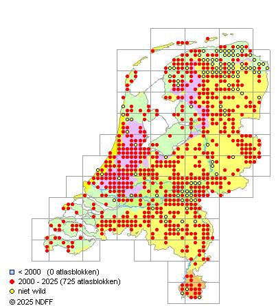 Bron: FLORON - Gemodelleerd op basis van waarnemingen uit de NDFF voor de periode 2000-2021.