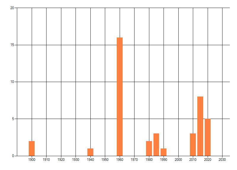 dus een trend in verspreiding kan hier niet direct uit worden afgelezen. Het opgegeven jaartal is het eerste jaar van de