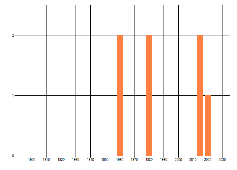 Het aantal atlasblokken (5x5 km) waarin de soort is gemeld binnen een periode van vijf jaar (vanaf 1980) of twintig jaar. Niet gecorrigeerd voor waarnemersinspanning en het aantal doorgegeven waarnemingen kan sterk variëren per periode, dus een trend in verspreiding kan hier niet direct uit worden afgelezen. Het opgegeven jaartal is het eerste jaar van de periode. Bron: gevalideerde waarnemingen uit de NDFF.