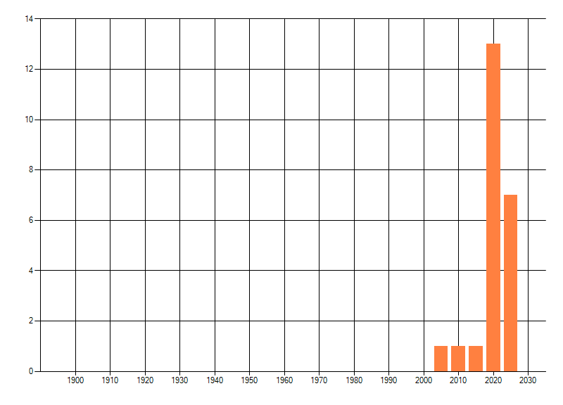 Het aantal atlasblokken (5x5 km) waarin de soort is gemeld binnen een periode van vijf jaar (vanaf 1980) of twintig jaar. Niet gecorrigeerd voor waarnemersinspanning en het aantal doorgegeven waarnemingen kan sterk variëren per periode, dus een trend in verspreiding kan hier niet direct uit worden afgelezen. Het opgegeven jaartal is het eerste jaar van de periode. Bron: gevalideerde waarnemingen uit de NDFF.