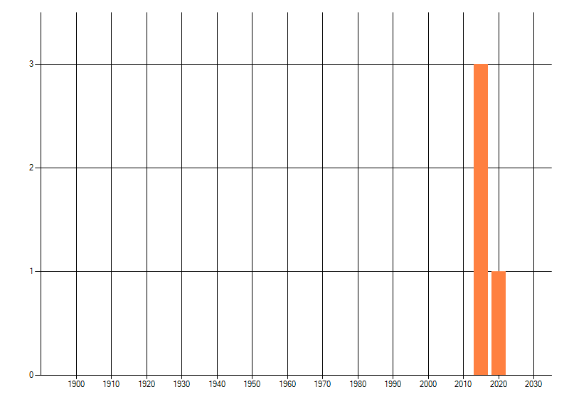 Het aantal atlasblokken (5x5 km) waarin de soort is gemeld binnen een periode van vijf jaar (vanaf 1980) of twintig jaar. Niet gecorrigeerd voor waarnemersinspanning en het aantal doorgegeven waarnemingen kan sterk variëren per periode, dus een trend in verspreiding kan hier niet direct uit worden afgelezen. Het opgegeven jaartal is het eerste jaar van de periode. Bron: gevalideerde waarnemingen uit de NDFF.