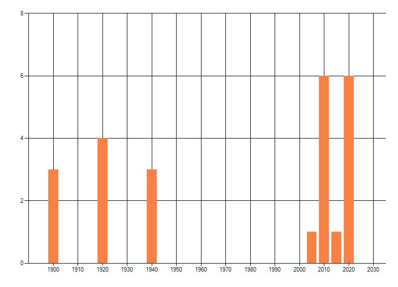 Het aantal atlasblokken (5x5 km) waarin de soort is gemeld binnen een periode van vijf jaar (vanaf 1980) of twintig jaar. Niet gecorrigeerd voor waarnemersinspanning en het aantal doorgegeven waarnemingen kan sterk variëren per periode, dus een trend in verspreiding kan hier niet direct uit worden afgelezen. Het opgegeven jaartal is het eerste jaar van de periode. Bron: gevalideerde waarnemingen uit de NDFF.