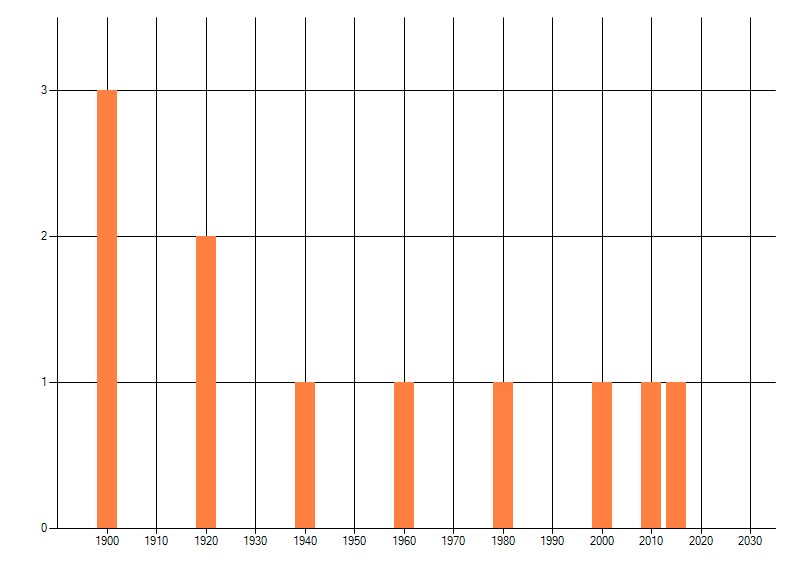 Het aantal atlasblokken (5x5 km) waarin de soort is gemeld binnen een periode van vijf jaar (vanaf 1980) of twintig jaar. Niet gecorrigeerd voor waarnemersinspanning en het aantal doorgegeven waarnemingen kan sterk variëren per periode, dus een trend in verspreiding kan hier niet direct uit worden afgelezen. Het opgegeven jaartal is het eerste jaar van de periode. Bron: gevalideerde waarnemingen uit de NDFF.