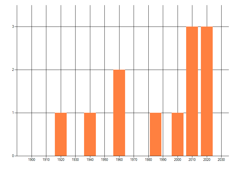 Het aantal atlasblokken (5x5 km) waarin de soort is gemeld binnen een periode van vijf jaar (vanaf 1980) of twintig jaar. Niet gecorrigeerd voor waarnemersinspanning en het aantal doorgegeven waarnemingen kan sterk variëren per periode, dus een trend in verspreiding kan hier niet direct uit worden afgelezen. Het opgegeven jaartal is het eerste jaar van de periode. Bron: gevalideerde waarnemingen uit de NDFF.