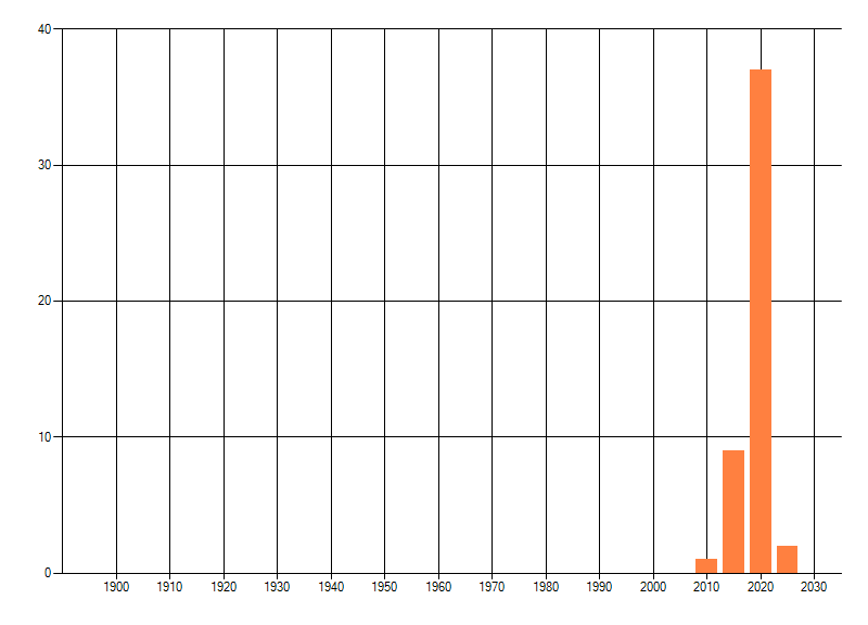 Het aantal atlasblokken (5x5 km) waarin de soort is gemeld binnen een periode van vijf jaar (vanaf 1980) of twintig jaar. Niet gecorrigeerd voor waarnemersinspanning en het aantal doorgegeven waarnemingen kan sterk variëren per periode, dus een trend in verspreiding kan hier niet direct uit worden afgelezen. Het opgegeven jaartal is het eerste jaar van de periode. Bron: gevalideerde waarnemingen uit de NDFF.