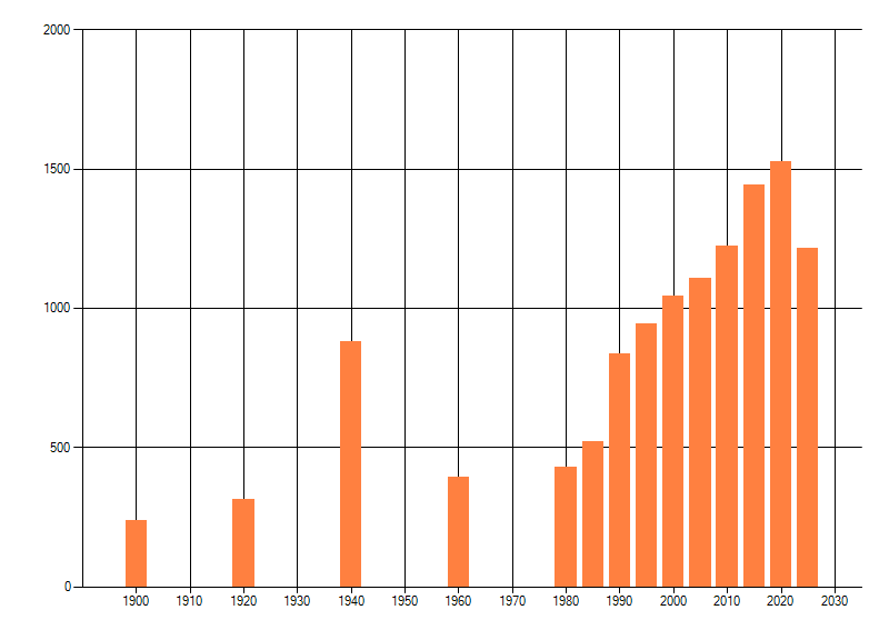 Het aantal atlasblokken (5x5 km) waarin de soort is gemeld binnen een periode van vijf jaar (vanaf 1980) of twintig jaar. Niet gecorrigeerd voor waarnemersinspanning en het aantal doorgegeven waarnemingen kan sterk variƫren per periode, dus een trend in verspreiding kan hier niet direct uit worden afgelezen. Het opgegeven jaartal is het eerste jaar van de periode. Bron: gevalideerde waarnemingen uit de NDFF.