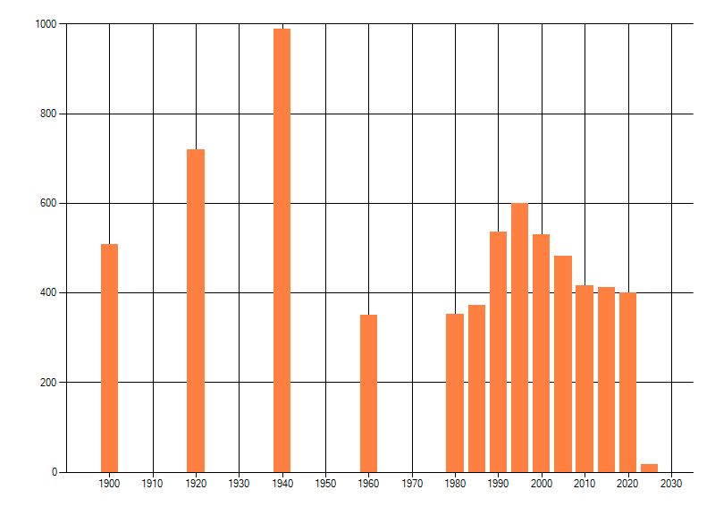 Het aantal atlasblokken (5x5 km) waarin de soort is gemeld binnen een periode van vijf jaar (vanaf 1980) of twintig jaar. Niet gecorrigeerd voor waarnemersinspanning en het aantal doorgegeven waarnemingen kan sterk variëren per periode, dus een trend in verspreiding kan hier niet direct uit worden afgelezen. Het opgegeven jaartal is het eerste jaar van de periode. Bron: gevalideerde waarnemingen uit de NDFF.