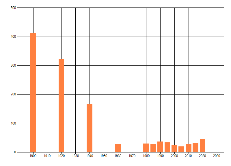 Het aantal atlasblokken (5x5 km) waarin de soort is gemeld binnen een periode van vijf jaar (vanaf 1980) of twintig jaar. Niet gecorrigeerd voor waarnemersinspanning en het aantal doorgegeven waarnemingen kan sterk variëren per periode, dus een trend in verspreiding kan hier niet direct uit worden afgelezen. Het opgegeven jaartal is het eerste jaar van de periode. Bron: gevalideerde waarnemingen uit de NDFF.