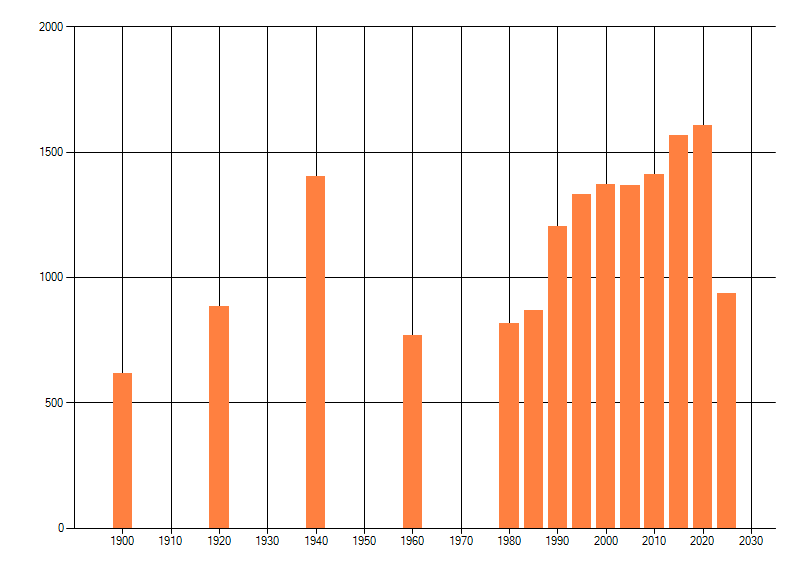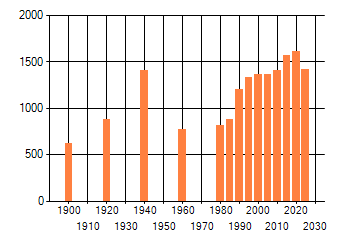 Het aantal atlasblokken (5x5 km) waarin de soort is gemeld binnen een periode van vijf jaar (vanaf 1980) of twintig jaar. Niet gecorrigeerd voor waarnemersinspanning en het aantal doorgegeven waarnemingen kan sterk variëren per periode, dus een trend in verspreiding kan hier niet direct uit worden afgelezen. Het opgegeven jaartal is het eerste jaar van de periode. Bron: gevalideerde waarnemingen uit de NDFF.