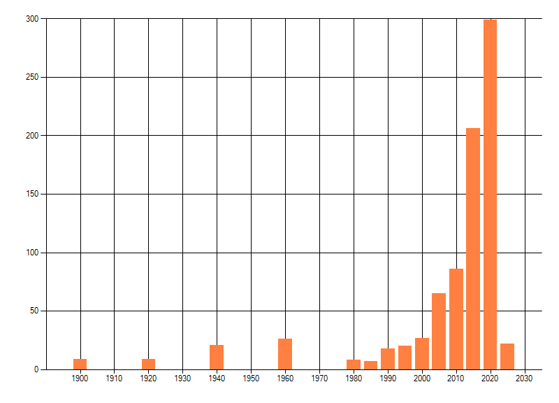 Het aantal atlasblokken (5x5 km) waarin de soort is gemeld binnen een periode van vijf jaar (vanaf 1980) of twintig jaar. Niet gecorrigeerd voor waarnemersinspanning en het aantal doorgegeven waarnemingen kan sterk variëren per periode, dus een trend in verspreiding kan hier niet direct uit worden afgelezen. Het opgegeven jaartal is het eerste jaar van de periode. Bron: gevalideerde waarnemingen uit de NDFF.