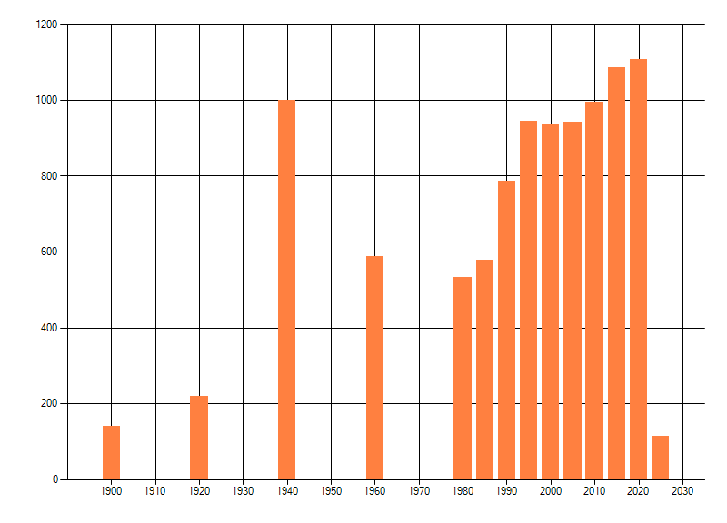 Het aantal atlasblokken (5x5 km) waarin de soort is gemeld binnen een periode van vijf jaar (vanaf 1980) of twintig jaar. Niet gecorrigeerd voor waarnemersinspanning en het aantal doorgegeven waarnemingen kan sterk variëren per periode, dus een trend in verspreiding kan hier niet direct uit worden afgelezen. Het opgegeven jaartal is het eerste jaar van de periode. Bron: gevalideerde waarnemingen uit de NDFF.