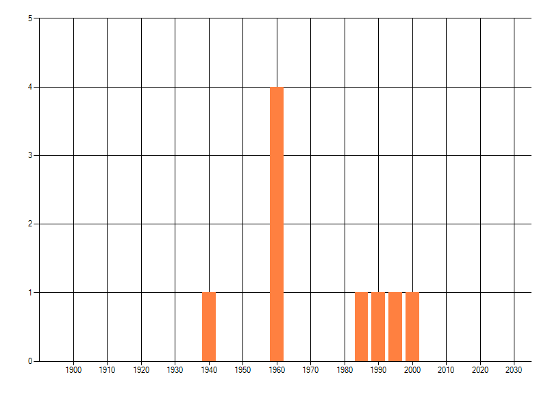 Het aantal atlasblokken (5x5 km) waarin de soort is gemeld binnen een periode van vijf jaar (vanaf 1980) of twintig jaar. Niet gecorrigeerd voor waarnemersinspanning en het aantal doorgegeven waarnemingen kan sterk variëren per periode, dus een trend in verspreiding kan hier niet direct uit worden afgelezen. Het opgegeven jaartal is het eerste jaar van de periode. Bron: gevalideerde waarnemingen uit de NDFF.