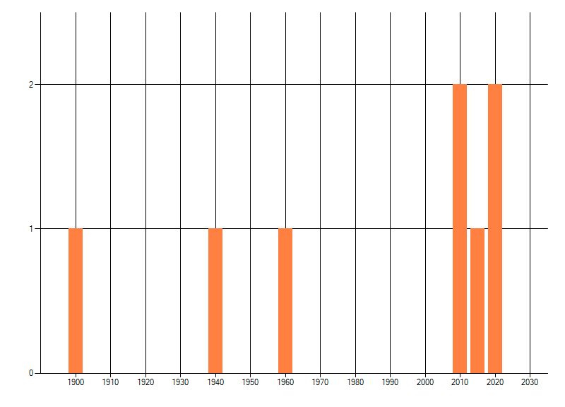 Het aantal atlasblokken (5x5 km) waarin de soort is gemeld binnen een periode van vijf jaar (vanaf 1980) of twintig jaar. Niet gecorrigeerd voor waarnemersinspanning en het aantal doorgegeven waarnemingen kan sterk variëren per periode, dus een trend in verspreiding kan hier niet direct uit worden afgelezen. Het opgegeven jaartal is het eerste jaar van de periode. Bron: gevalideerde waarnemingen uit de NDFF.