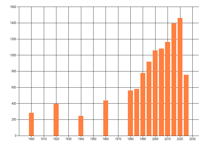 Het aantal atlasblokken (5x5 km) waarin de soort is gemeld binnen een periode van vijf jaar (vanaf 1980) of twintig jaar. Niet gecorrigeerd voor waarnemersinspanning en het aantal doorgegeven waarnemingen kan sterk variëren per periode, dus een trend in verspreiding kan hier niet direct uit worden afgelezen. Het opgegeven jaartal is het eerste jaar van de periode. Bron: gevalideerde waarnemingen uit de NDFF.