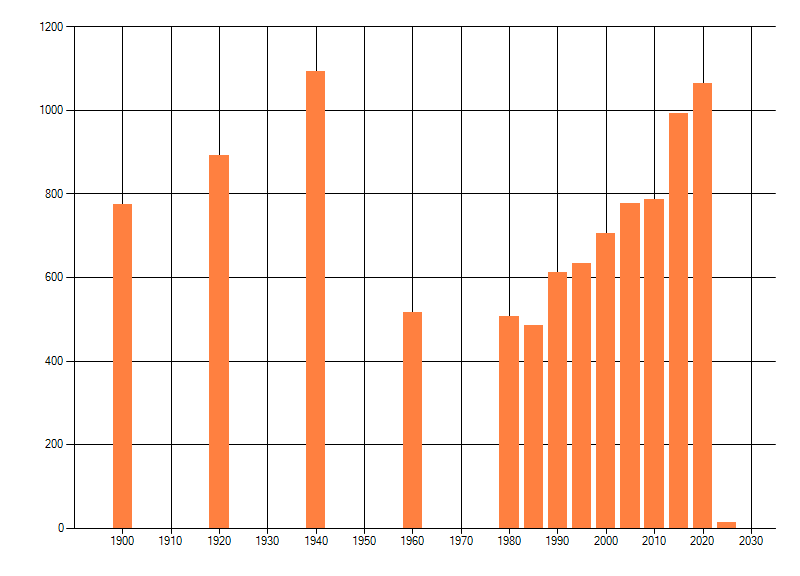 Het aantal atlasblokken (5x5 km) waarin de soort is gemeld binnen een periode van vijf jaar (vanaf 1980) of twintig jaar. Niet gecorrigeerd voor waarnemersinspanning en het aantal doorgegeven waarnemingen kan sterk variƫren per periode, dus een trend in verspreiding kan hier niet direct uit worden afgelezen. Het opgegeven jaartal is het eerste jaar van de periode. Bron: gevalideerde waarnemingen uit de NDFF.
