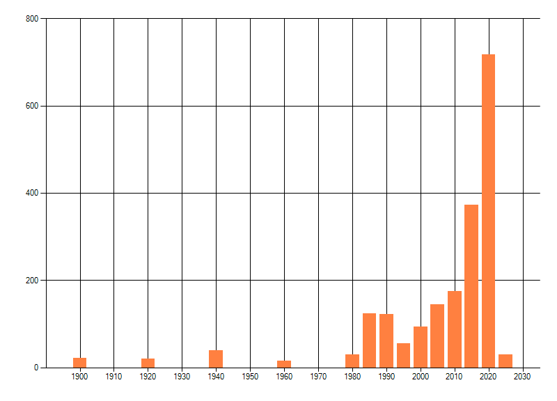 Het aantal atlasblokken (5x5 km) waarin de soort is gemeld binnen een periode van vijf jaar (vanaf 1980) of twintig jaar. Niet gecorrigeerd voor waarnemersinspanning en het aantal doorgegeven waarnemingen kan sterk variëren per periode, dus een trend in verspreiding kan hier niet direct uit worden afgelezen. Het opgegeven jaartal is het eerste jaar van de periode. Bron: gevalideerde waarnemingen uit de NDFF.