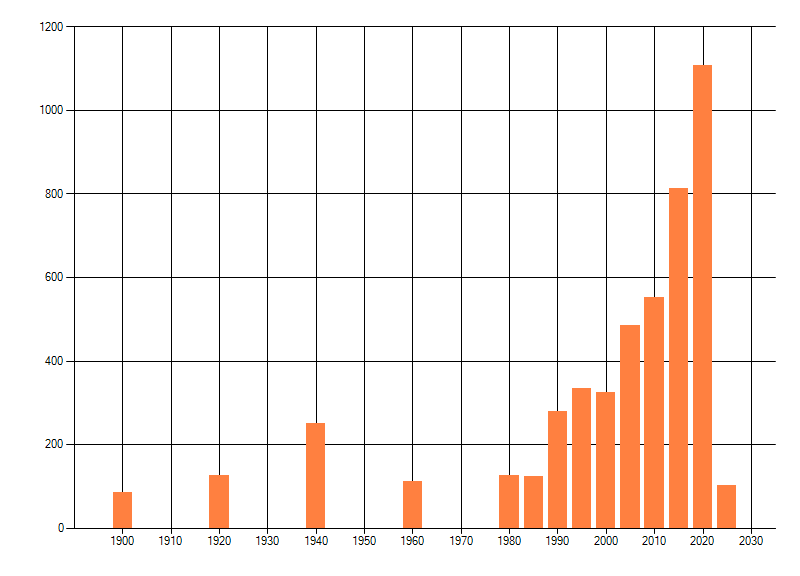 Het aantal atlasblokken (5x5 km) waarin de soort is gemeld binnen een periode van vijf jaar (vanaf 1980) of twintig jaar. Niet gecorrigeerd voor waarnemersinspanning en het aantal doorgegeven waarnemingen kan sterk variëren per periode, dus een trend in verspreiding kan hier niet direct uit worden afgelezen. Het opgegeven jaartal is het eerste jaar van de periode. Bron: gevalideerde waarnemingen uit de NDFF.