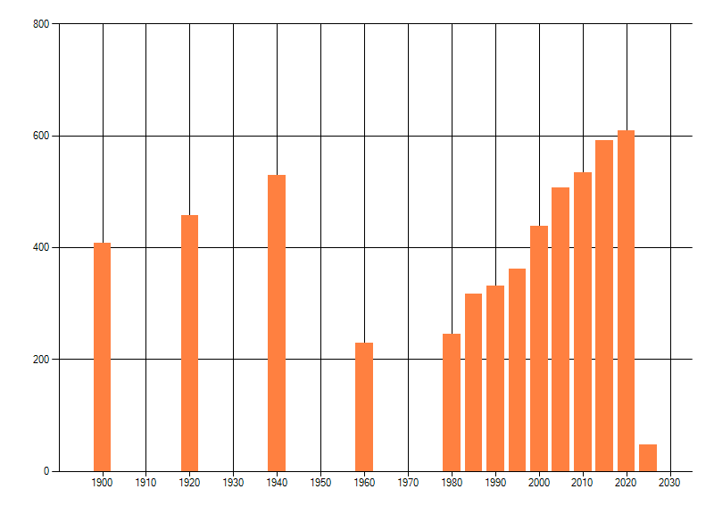 Het aantal atlasblokken (5x5 km) waarin de soort is gemeld binnen een periode van vijf jaar (vanaf 1980) of twintig jaar. Niet gecorrigeerd voor waarnemersinspanning en het aantal doorgegeven waarnemingen kan sterk variëren per periode, dus een trend in verspreiding kan hier niet direct uit worden afgelezen. Het opgegeven jaartal is het eerste jaar van de periode. Bron: gevalideerde waarnemingen uit de NDFF.