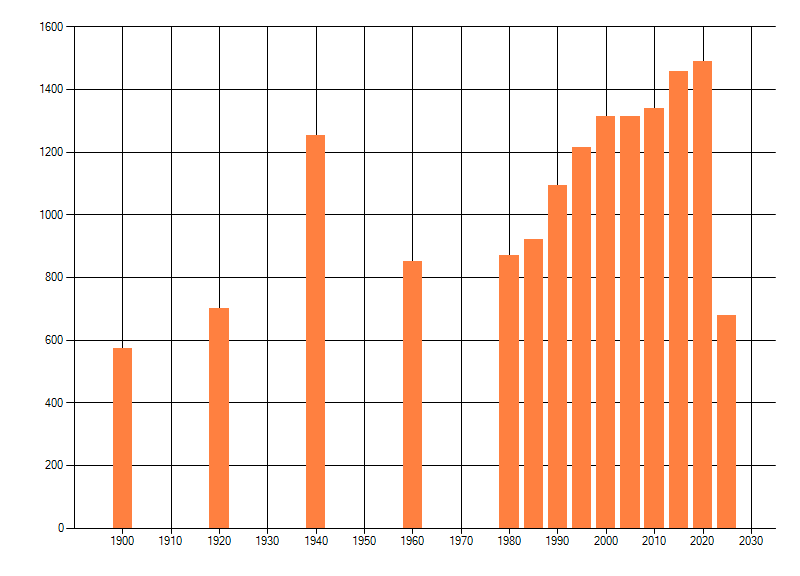 Het aantal atlasblokken (5x5 km) waarin de soort is gemeld binnen een periode van vijf jaar (vanaf 1980) of twintig jaar. Niet gecorrigeerd voor waarnemersinspanning en het aantal doorgegeven waarnemingen kan sterk variƫren per periode, dus een trend in verspreiding kan hier niet direct uit worden afgelezen. Het opgegeven jaartal is het eerste jaar van de periode. Bron: gevalideerde waarnemingen uit de NDFF.