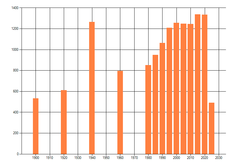 Het aantal atlasblokken (5x5 km) waarin de soort is gemeld binnen een periode van vijf jaar (vanaf 1980) of twintig jaar. Niet gecorrigeerd voor waarnemersinspanning en het aantal doorgegeven waarnemingen kan sterk variëren per periode, dus een trend in verspreiding kan hier niet direct uit worden afgelezen. Het opgegeven jaartal is het eerste jaar van de periode. Bron: gevalideerde waarnemingen uit de NDFF.