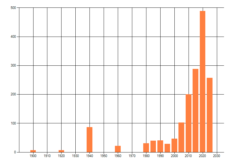 Het aantal atlasblokken (5x5 km) waarin de soort is gemeld binnen een periode van vijf jaar (vanaf 1980) of twintig jaar. Niet gecorrigeerd voor waarnemersinspanning en het aantal doorgegeven waarnemingen kan sterk variëren per periode, dus een trend in verspreiding kan hier niet direct uit worden afgelezen. Het opgegeven jaartal is het eerste jaar van de periode. Bron: gevalideerde waarnemingen uit de NDFF.