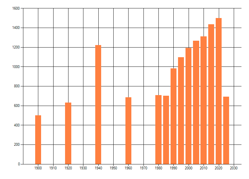 Het aantal atlasblokken (5x5 km) waarin de soort is gemeld binnen een periode van vijf jaar (vanaf 1980) of twintig jaar. Niet gecorrigeerd voor waarnemersinspanning en het aantal doorgegeven waarnemingen kan sterk variëren per periode, dus een trend in verspreiding kan hier niet direct uit worden afgelezen. Het opgegeven jaartal is het eerste jaar van de periode. Bron: gevalideerde waarnemingen uit de NDFF.