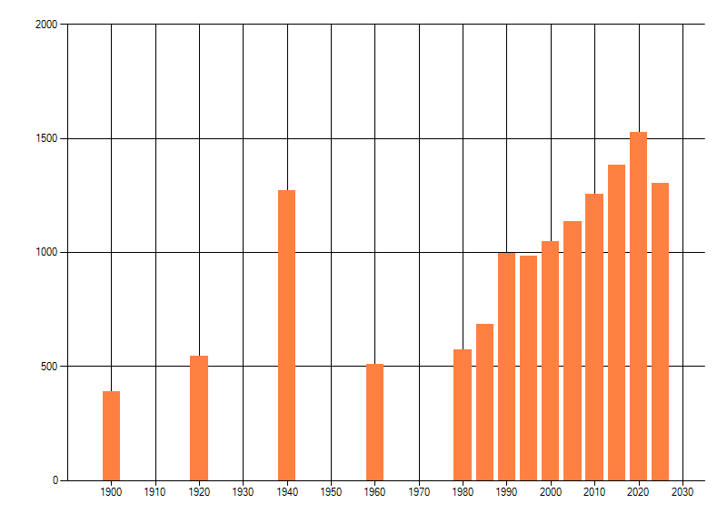 Het aantal atlasblokken (5x5 km) waarin de soort is gemeld binnen een periode van vijf jaar (vanaf 1980) of twintig jaar. Niet gecorrigeerd voor waarnemersinspanning en het aantal doorgegeven waarnemingen kan sterk variëren per periode, dus een trend in verspreiding kan hier niet direct uit worden afgelezen. Het opgegeven jaartal is het eerste jaar van de periode. Bron: gevalideerde waarnemingen uit de NDFF.