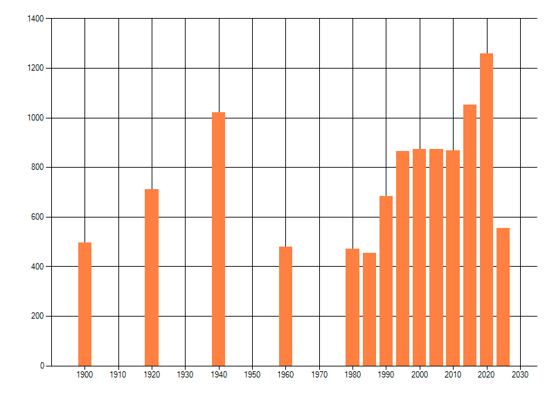 Het aantal atlasblokken (5x5 km) waarin de soort is gemeld binnen een periode van vijf jaar (vanaf 1980) of twintig jaar. Niet gecorrigeerd voor waarnemersinspanning en het aantal doorgegeven waarnemingen kan sterk variƫren per periode, dus een trend in verspreiding kan hier niet direct uit worden afgelezen. Het opgegeven jaartal is het eerste jaar van de periode. Bron: gevalideerde waarnemingen uit de NDFF.