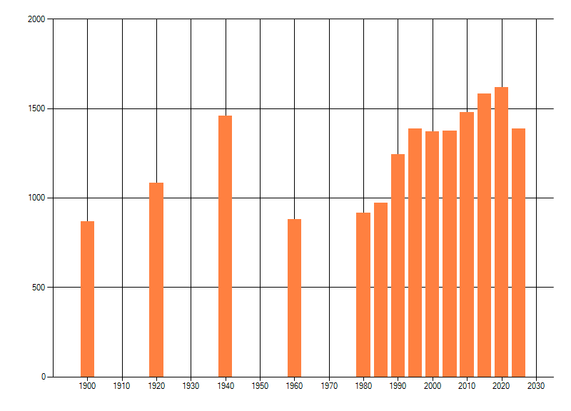 Het aantal atlasblokken (5x5 km) waarin de soort is gemeld binnen een periode van vijf jaar (vanaf 1980) of twintig jaar. Niet gecorrigeerd voor waarnemersinspanning en het aantal doorgegeven waarnemingen kan sterk variëren per periode, dus een trend in verspreiding kan hier niet direct uit worden afgelezen. Het opgegeven jaartal is het eerste jaar van de periode. Bron: gevalideerde waarnemingen uit de NDFF.