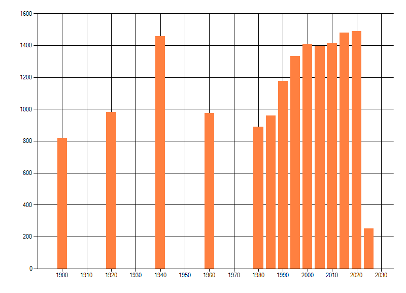Het aantal atlasblokken (5x5 km) waarin de soort is gemeld binnen een periode van vijf jaar (vanaf 1980) of twintig jaar. Niet gecorrigeerd voor waarnemersinspanning en het aantal doorgegeven waarnemingen kan sterk variƫren per periode, dus een trend in verspreiding kan hier niet direct uit worden afgelezen. Het opgegeven jaartal is het eerste jaar van de periode. Bron: gevalideerde waarnemingen uit de NDFF.