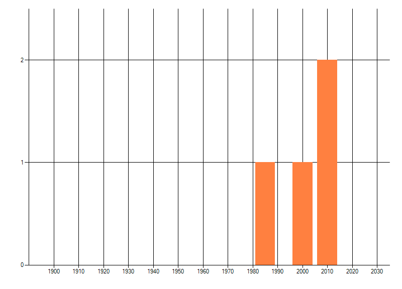 Het aantal atlasblokken (5x5 km) waarin de soort is gemeld binnen een periode van vijf jaar (vanaf 1980) of twintig jaar. Niet gecorrigeerd voor waarnemersinspanning en het aantal doorgegeven waarnemingen kan sterk variëren per periode, dus een trend in verspreiding kan hier niet direct uit worden afgelezen. Het opgegeven jaartal is het eerste jaar van de periode. Bron: gevalideerde waarnemingen uit de NDFF.