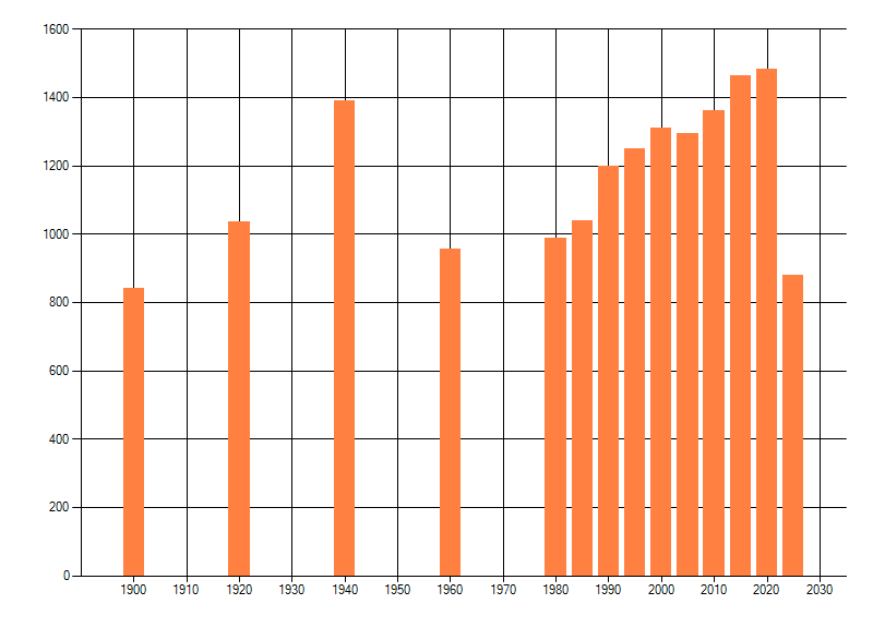 Het aantal atlasblokken (5x5 km) waarin de soort is gemeld binnen een periode van vijf jaar (vanaf 1980) of twintig jaar. Niet gecorrigeerd voor waarnemersinspanning en het aantal doorgegeven waarnemingen kan sterk variƫren per periode, dus een trend in verspreiding kan hier niet direct uit worden afgelezen. Het opgegeven jaartal is het eerste jaar van de periode. Bron: gevalideerde waarnemingen uit de NDFF.