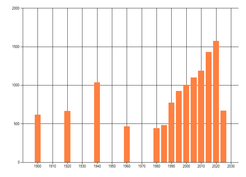 Het aantal atlasblokken (5x5 km) waarin de soort is gemeld binnen een periode van vijf jaar (vanaf 1980) of twintig jaar. Niet gecorrigeerd voor waarnemersinspanning en het aantal doorgegeven waarnemingen kan sterk variëren per periode, dus een trend in verspreiding kan hier niet direct uit worden afgelezen. Het opgegeven jaartal is het eerste jaar van de periode. Bron: gevalideerde waarnemingen uit de NDFF.