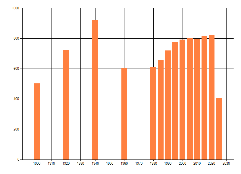 Het aantal atlasblokken (5x5 km) waarin de soort is gemeld binnen een periode van vijf jaar (vanaf 1980) of twintig jaar. Niet gecorrigeerd voor waarnemersinspanning en het aantal doorgegeven waarnemingen kan sterk variƫren per periode, dus een trend in verspreiding kan hier niet direct uit worden afgelezen. Het opgegeven jaartal is het eerste jaar van de periode. Bron: gevalideerde waarnemingen uit de NDFF.